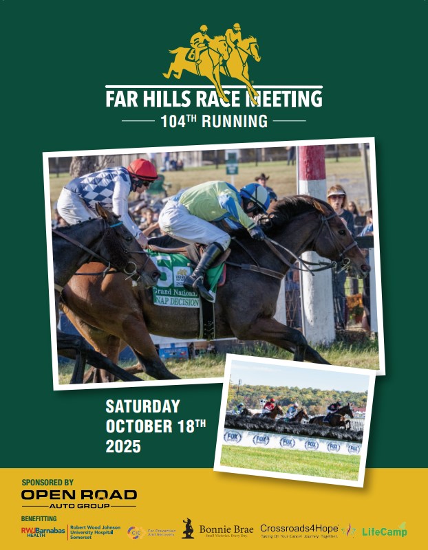 The Far Hills Race Meeting is New Jersey’s premier social, charity, and sporting event. For over a century, this annual gathering has attracted over 20,000 loyal attendees to watch the world’s finest steeplechases, reconnect with family and friends, network, support worthy causes and make memories to last a lifetime. Over the years, the Far Hills Race Meeting has donated more than $20 million to support regional health-care organizations.